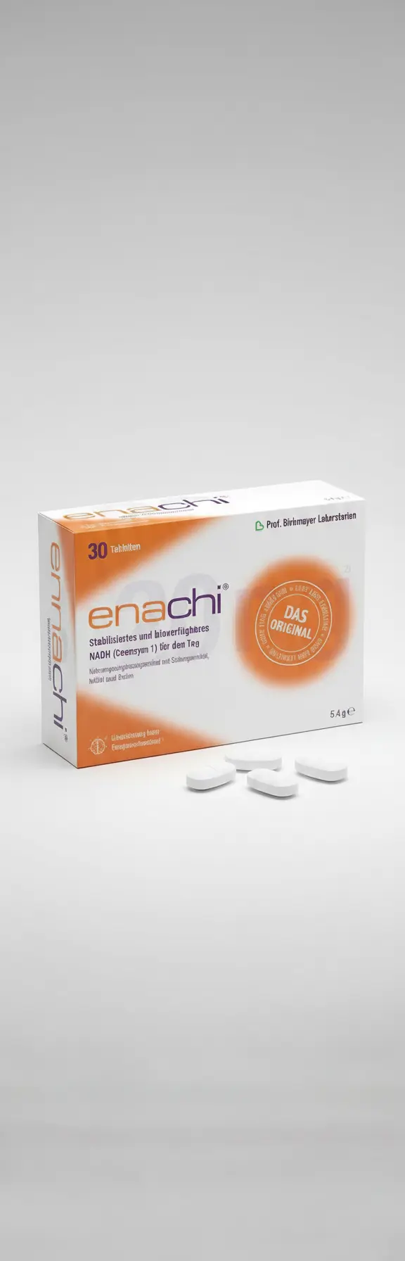 ENACHI® wird sublingual eingenommen – das heisst, man lässt sie unter der Zunge zergehen. Jede Tablette enthält NADH 20 mg in stabilisierter Form sowie zusätzlich 20 µg Biotin; empfohlen wird 1 Tablette pro Tag.